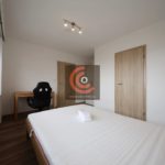La chambre est située en rez-de-chaussée et elle profite d’une salle de douche et wc séparé privatif. La surface totale des parties privatives est de +/- 14,5 m², incluant la chambre de +/- 12 m².